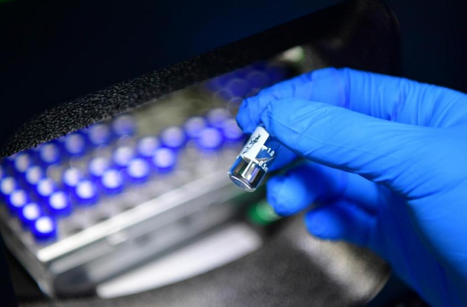 2025年3月31日,在位于肥西县的安徽合城生物医药科技有限公司,技术人员对研发的样品进行液相检测。新华社发(徐勇 摄)