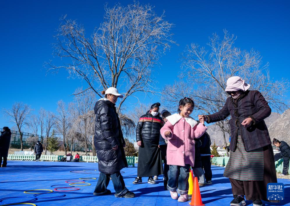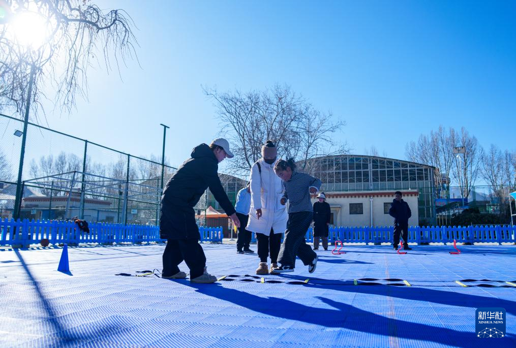 1月22日,残障儿童在拉萨市全民健身体彩公园内参加“阳光残障儿童公益兴趣班”体适能训练课程。