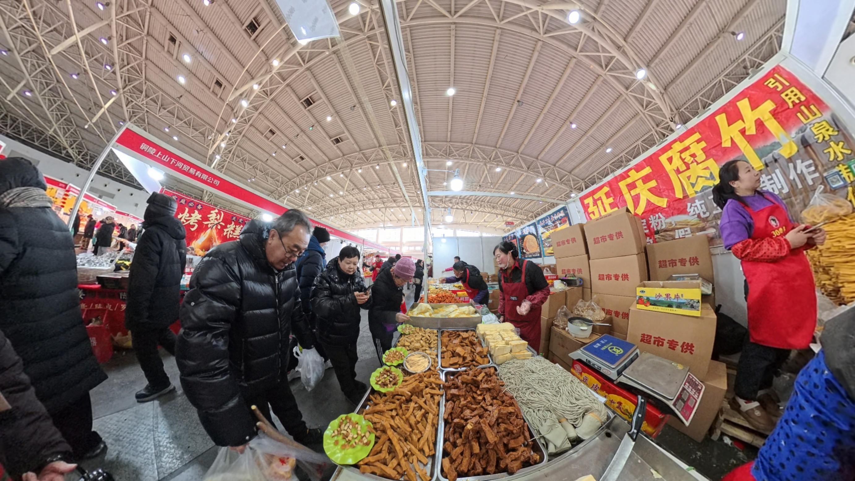 1月22日,在北京农业展览馆,北京年货大集正式拉开帷幕。本网记者在现场看到,来自东北的优质大米、广东的特色盆菜、云南的鲜美菌菇……来自天南地北的特色风味汇聚一堂,共同组成了一桌丰盛的“舌尖上的中国”。