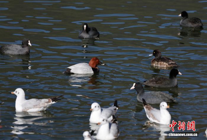 1月22日,多种候鸟和谐共处。位于云南省迪庆藏族自治州香格里拉市的纳帕海省级自然保护区是高原湿地,也是鸟类的“度夏越冬”乐园。越冬高峰期,国家一级、二级重点保护野生动物黑颈鹤、黑鹳、灰鹤等鸟类数量约5万只。中新社记者 黄兴鸿 摄