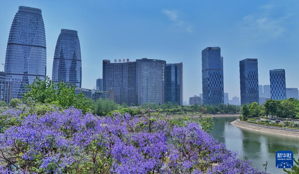 2025年5月12日拍摄的四川省成都市锦江区锦江畔风光(无人机照片)。