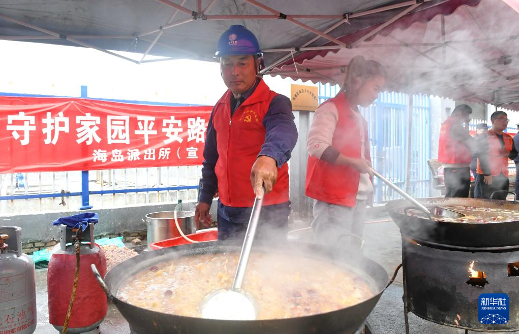 1月26日,刘江平和乡亲们一起捐钱捐物参加“海岛寻年味 腊八迎福来”海岛乡迎新春活动。