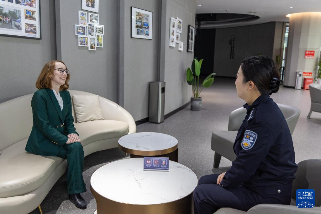 在重庆市公安局出入境管理局移民事务服务中心,民警为外籍人员解答相关免签政策(1月27日摄)。