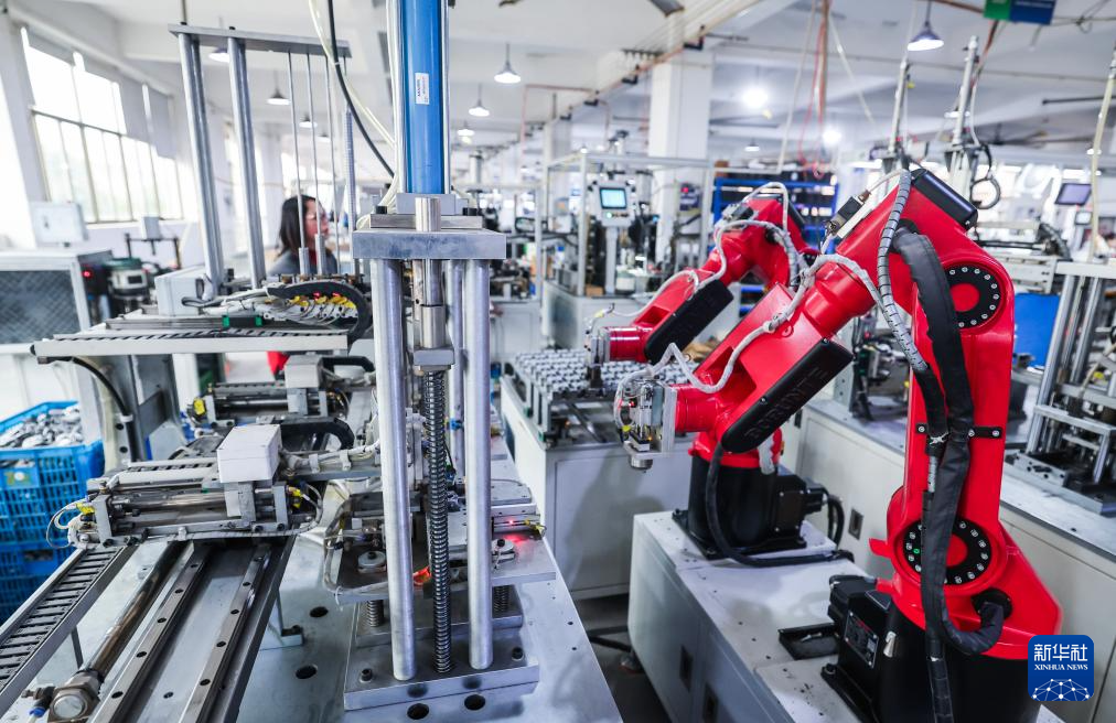 1月29日,在位于金华市金东区的金华精研机电股份有限公司车间内,自动化流水线上在生产充气泵。该公司主要产品为充气泵,主要销往国内市场及欧美、日本、东南亚等海外市场,是国家高新技术企业。