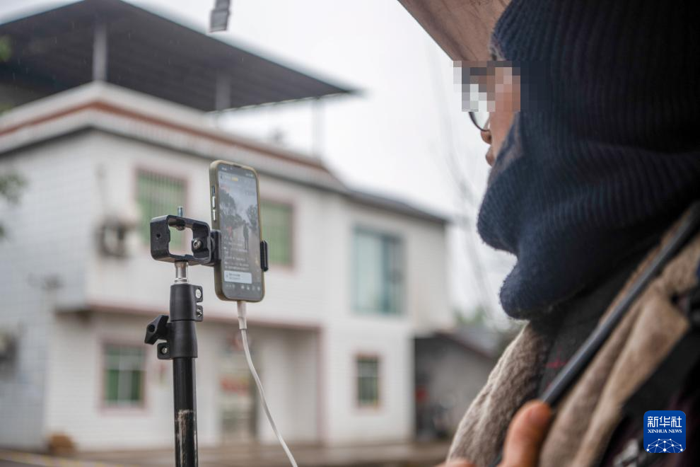 1月20日,在重庆市合川区云门街道庆福村,主播在合川女孩“呆呆”家门口进行直播。