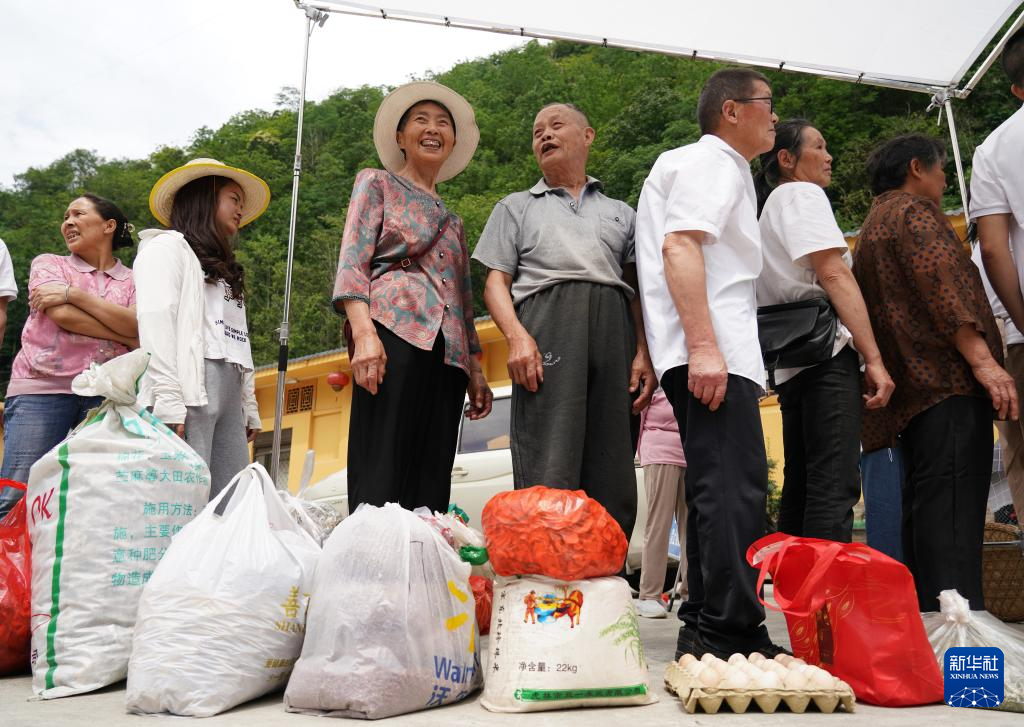 在安康市岚皋县孟石岭镇电商直播基地,群众排队准备直播售卖山货(2025年6月24日摄)。