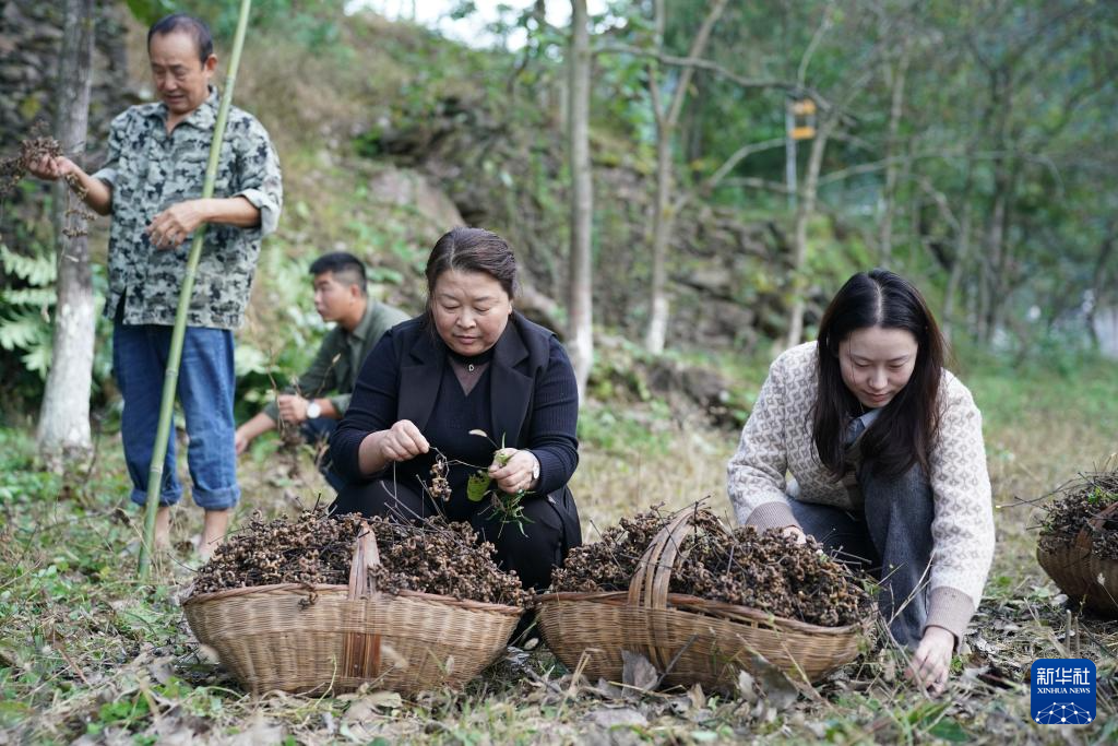2025年10月28日,果农在安康市旬阳市神河镇王义沟社区拐枣种植基地采收拐枣。