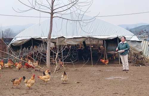 “看,这就是我们的淮南麻黄鸡。它骨架匀称,羽毛丰满有光泽。母鸡以麻黄色的羽色为主,公鸡则是黄红色,尾羽呈墨绿色,喙和胫部呈铁青色,整体看起来挺拔而有活力。”安徽聚满仓生态农业科技有限公司经理杨海蓉介绍。