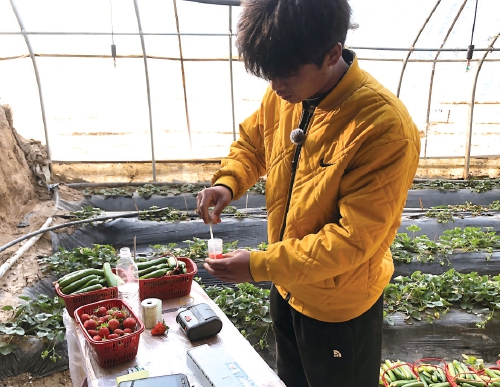果蔬基地检测员进行农药检测。 农民日报全媒体记者 李盎 摄