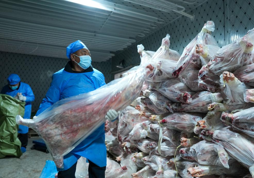 在山下,现代化畜牧工厂里,村民们有条不紊地将鲜嫩的牛羊肉包装、装箱,这些带着唐古拉山气息的美味,通过物流网络发往全国各地。