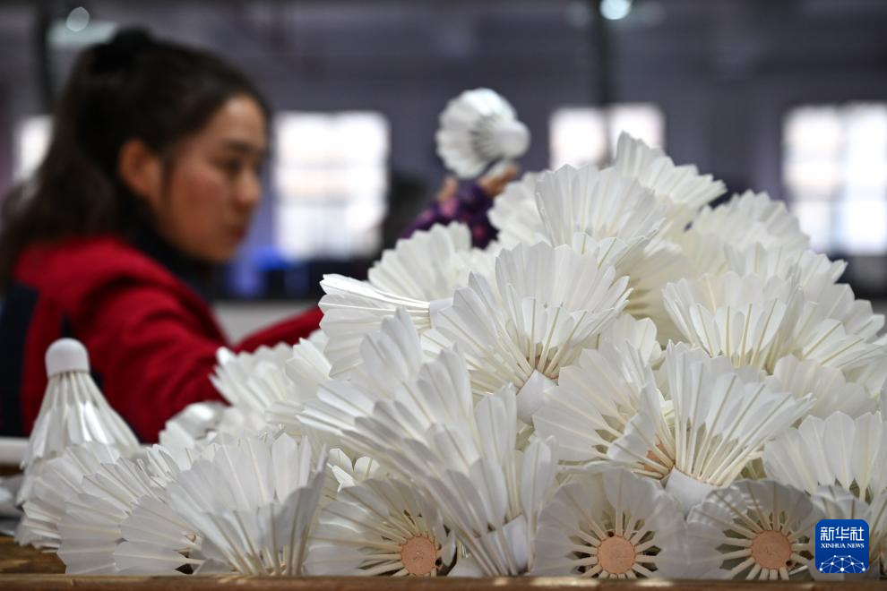近年来,全县创新“上游鹅孵化与养殖、中游加工和运动装备制造、下游体育旅游”的融合发展模式,目前已成功吸引10余家羽毛球运动装备制造企业集聚,形成了从羽毛球加工到球拍、球筒、球包、球袜等的完整制造集群。