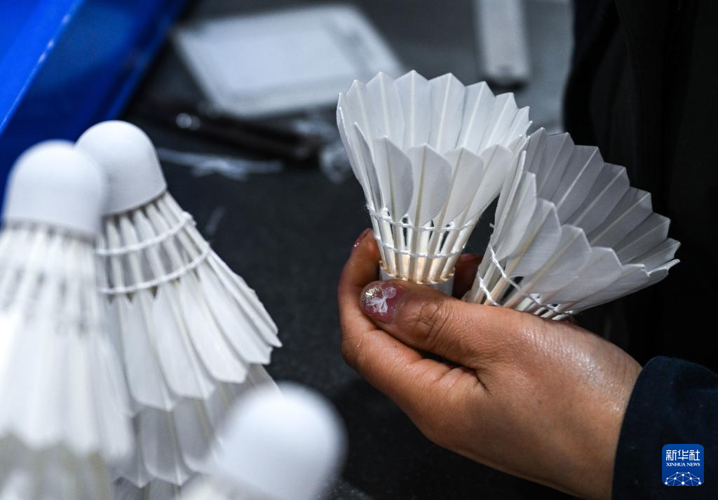 工人在贵州锦屏经济开发区羽毛球生产基地检查羽毛球成品(2026年1月22日摄)。