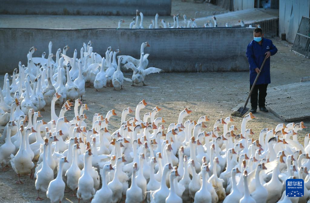 工人在贵州省锦屏县新化乡欧阳村的生态鹅育雏基地管理种鹅(2026年1月21日摄)。