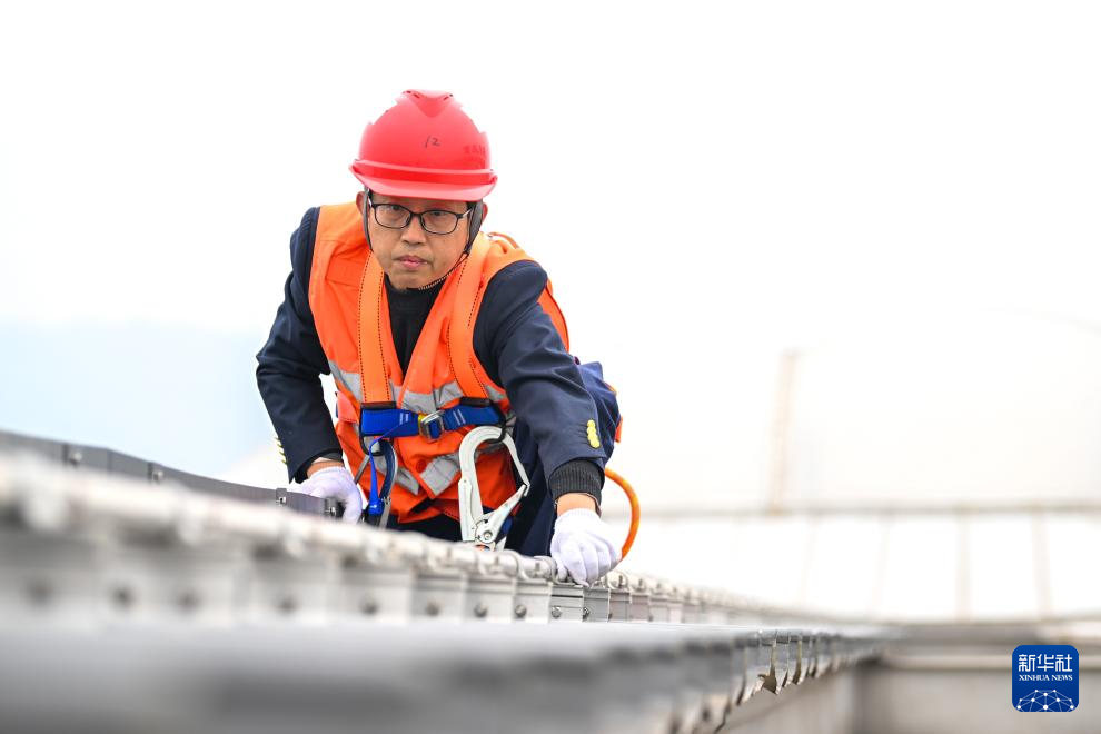 2月3日,鲁奇在重庆东站站房屋顶紧固螺栓。