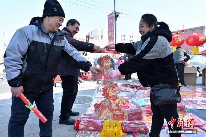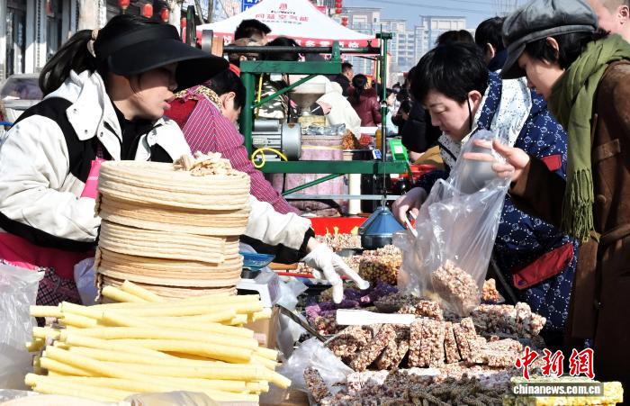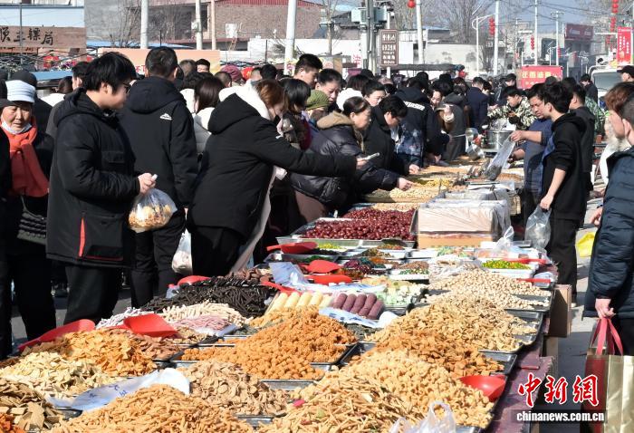 2月3日,民众在南佐大集上选购各类年货。中新社记者 翟羽佳 摄