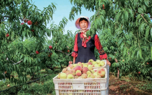 安丘市官庄镇于家洼大桃种植专业合作社的蜜桃丰收了。 安丘市委宣传部供图