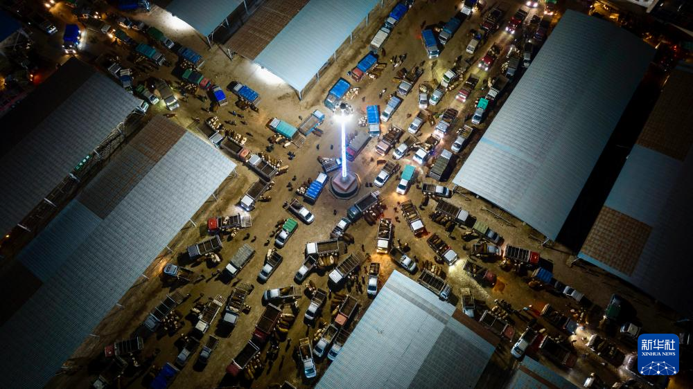 这是2月4日拍摄的宁夏固原市西吉县兴隆镇单家集活畜交易市场(无人机照片)。