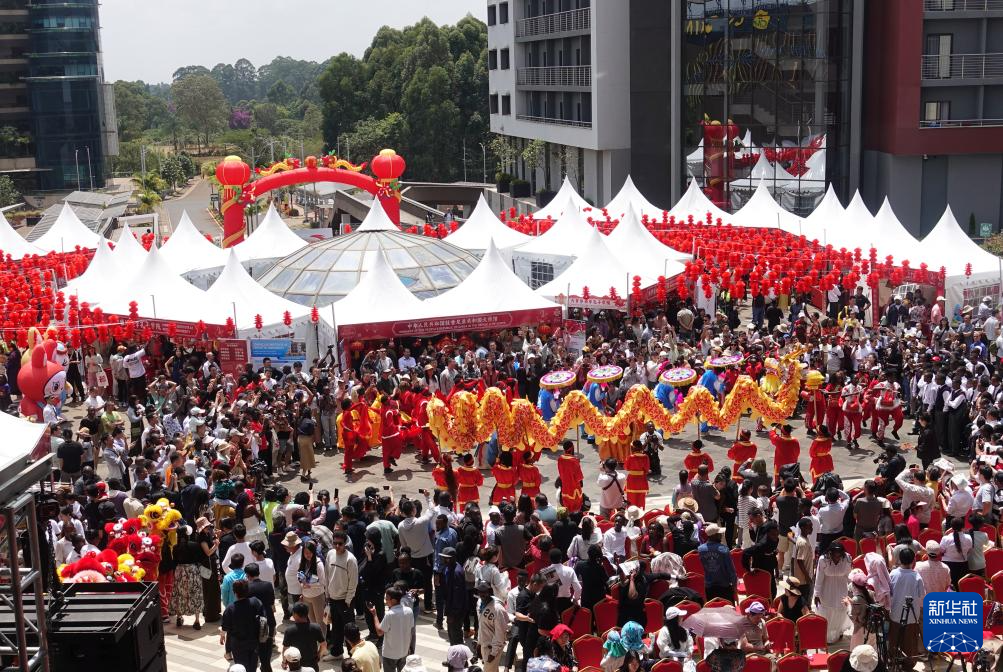 这是2月8日拍摄的在肯尼亚首都内罗毕举行的中国春节庙会现场。