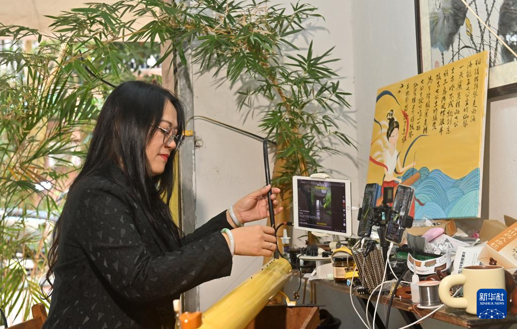 2月7日,苏海珍通过网络直播宣传推介京族独弦琴艺术。