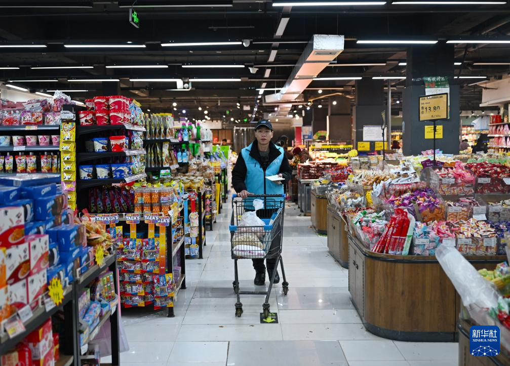 2月9日,在河南省周口市鹿邑县玄武镇一家超市内,马高杰在采购商品。