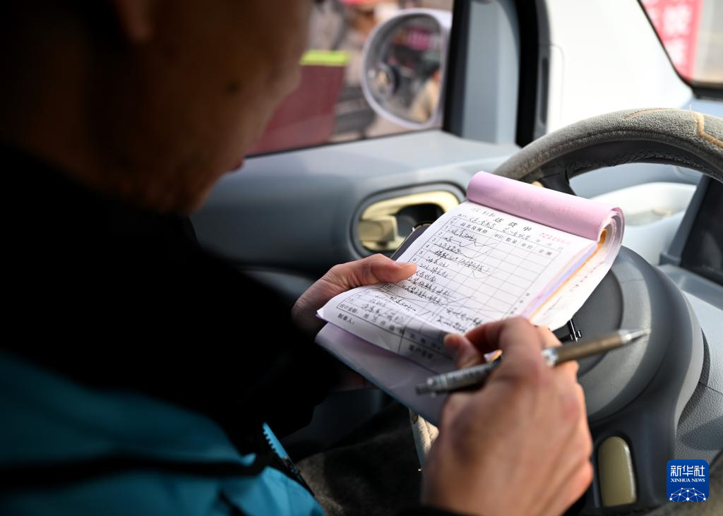 2月10日,在河南省周口市鹿邑县玄武镇,马高杰查看送货清单。