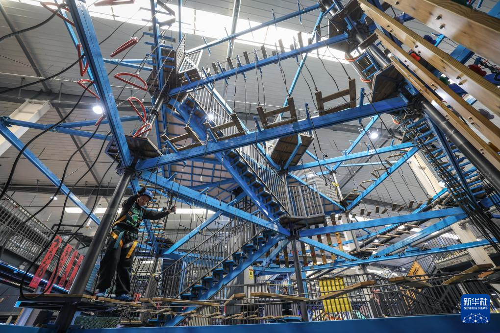 2月12日,小朋友在沈阳粮仓文化创意产业园内的“快乐专+”游乐场体验游乐项目。
