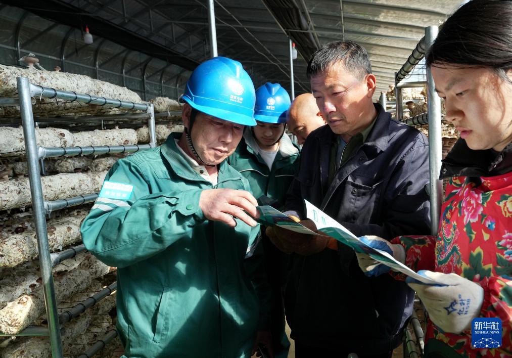 2月11日,国网平山县供电公司员工在辖区古月镇香菇种植基地向农民宣传安全用电知识。