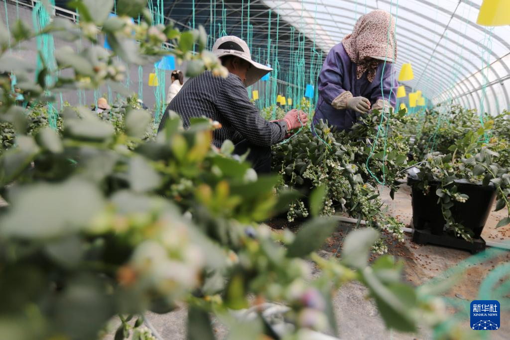 2024年以来,当地因地制宜发展智慧农业,通过“企业+合作社+农户”的模式,引入耐寒抗旱的蓝莓品种,在标准化温室大棚中采用无土栽培技术并配套物联网设备,成功发展了规模化种植的高原蓝莓产业,盛果期年产量可达8万斤,帮助农民拓宽增收渠道,为乡村振兴注入“甜蜜动能”。