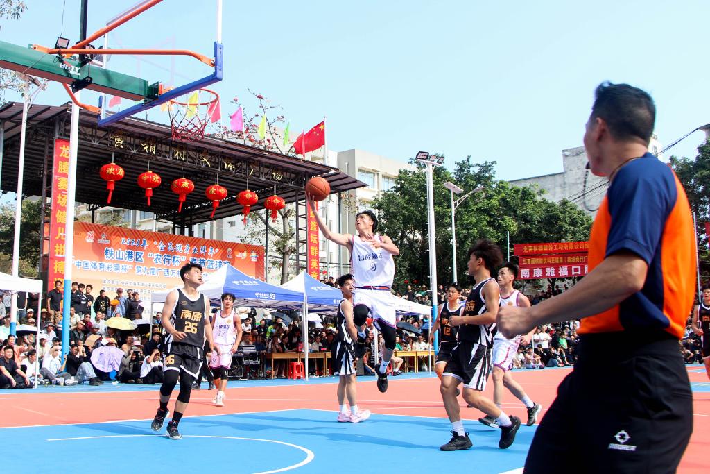 ↑图为北海市铁山港区篮球赛现场。
