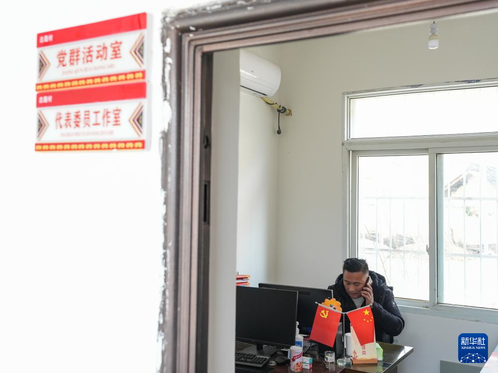 1月28日,郑望春在古路村党群服务中心工作室内和村民电话交流。