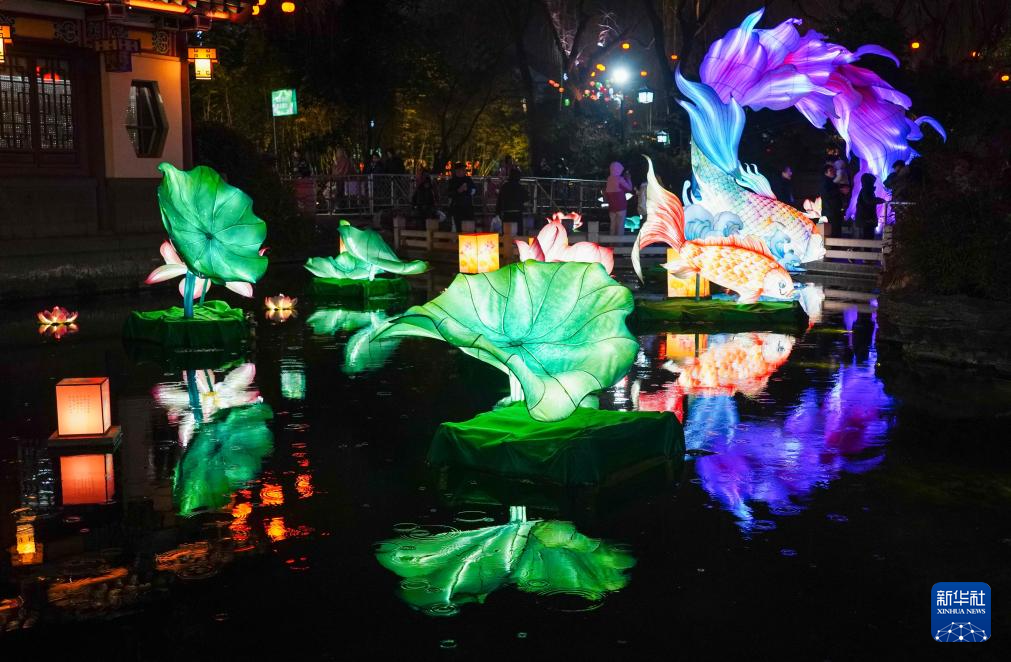 元宵佳节临近,在济南天下第一泉风景区,色彩丰富、造型多样的彩灯沿泉畔点亮,与清澈荡漾的泉水交相辉映,为城市增添了喜庆祥和的节日气氛。