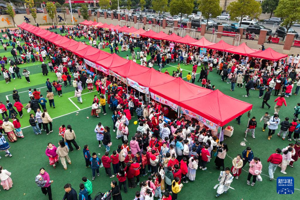 这是3月4日拍摄的春季开学爱心义卖活动现场(无人机照片)。