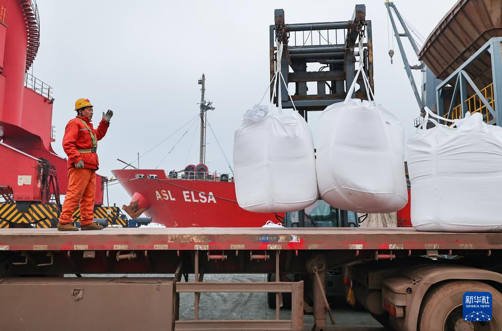 春耕农忙时节,江苏连云港港畅通农用物资绿色通道,对化肥等农资做到随到随卸,装车运输全程高效流水作业,确保春耕农资供应。