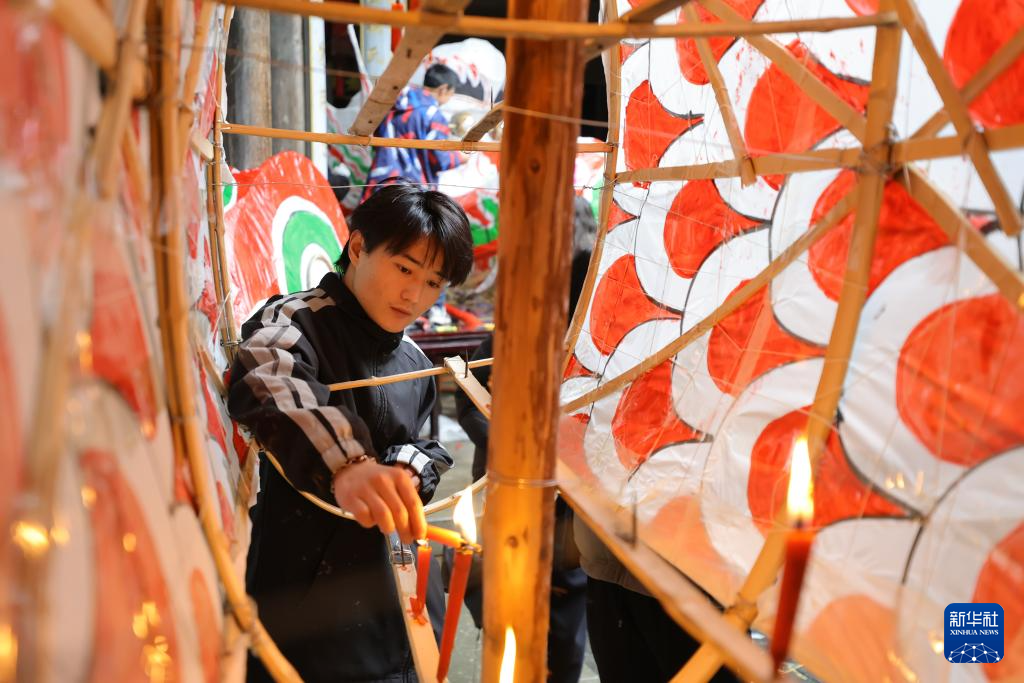 3月1日,安徽省黄山市歙县溪头镇汪满田村村民在制作鱼灯。
