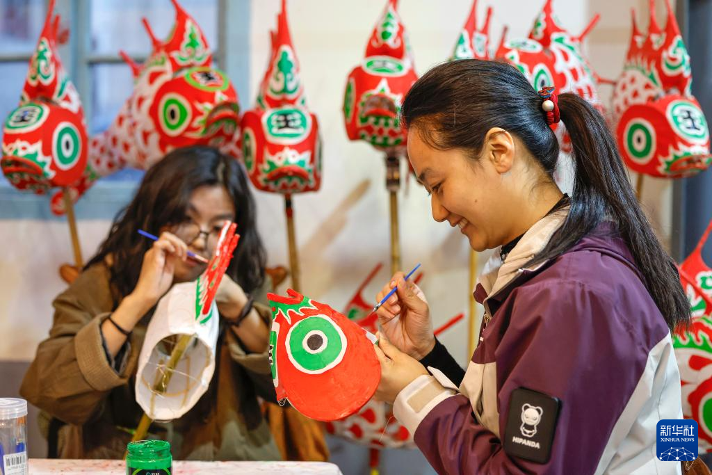 3月1日,游客在安徽省黄山市歙县溪头镇汪满田村体验鱼灯制作。