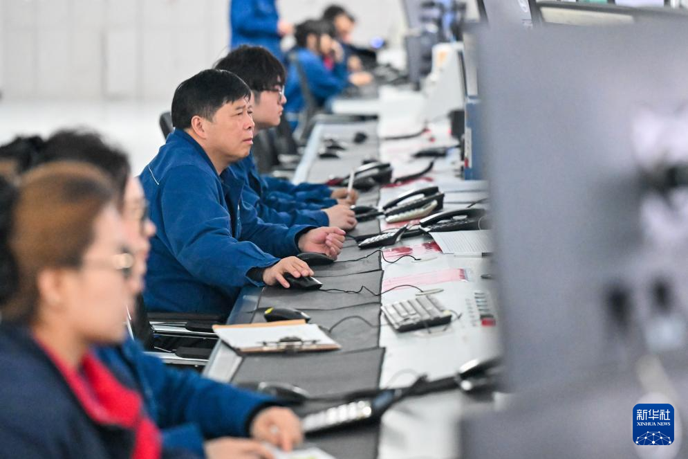 在位于新疆昌吉回族自治州玛纳斯县的新疆中能万源化工有限公司,工作人员在中控室监控设备运转情况(3月5日摄)。