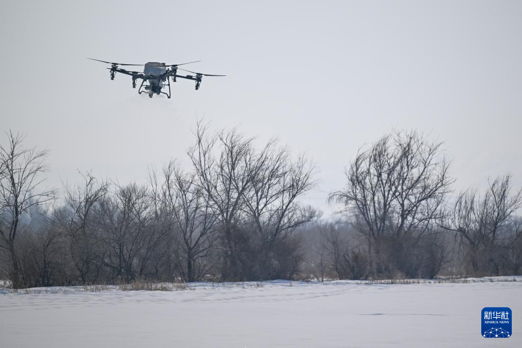 在新疆昌吉回族自治州玛纳斯县乐土驿镇,无人机在播撒返青肥料(3月4日摄)。