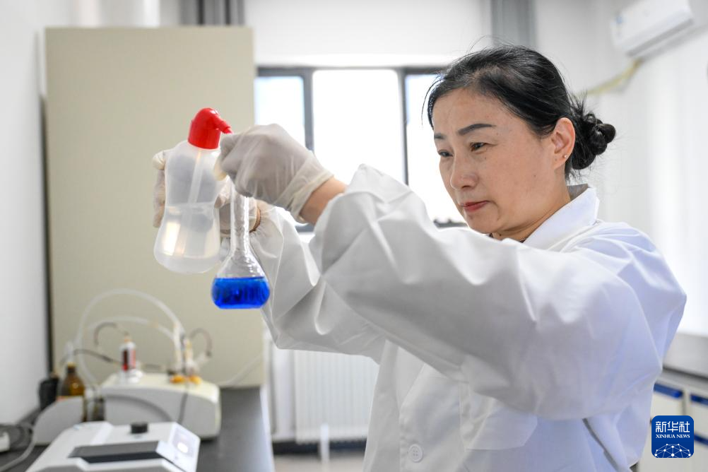 在位于新疆昌吉回族自治州玛纳斯县的新疆中能万源化工有限公司,工作人员在进行成品检验(3月5日摄)。