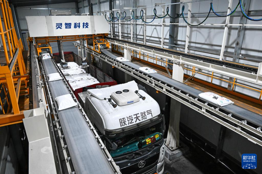 这是在新疆昌吉回族自治州玛纳斯县的新疆中能万源化工有限公司拍摄的自动化装车线(3月5日摄)。