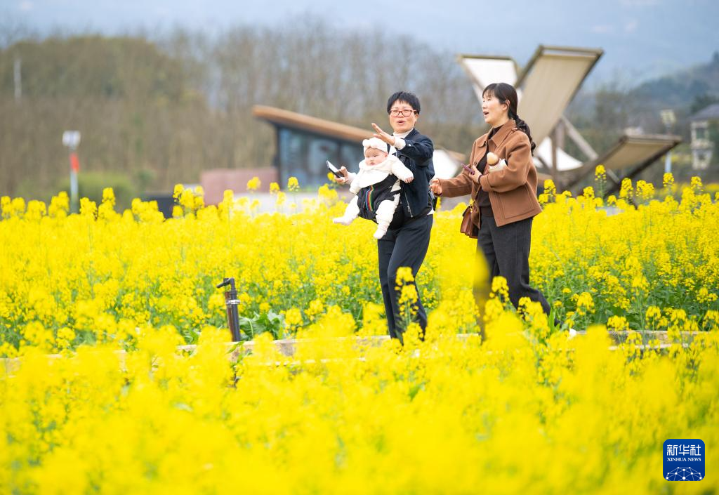 近日,重庆市璧山区七塘镇将军村莲花穴的油菜花田进入盛花期,吸引大批游客前来踏青打卡。
