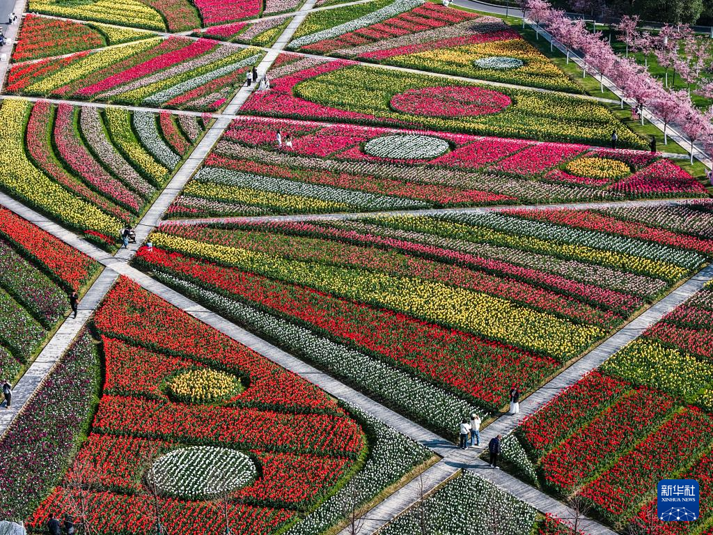 花田美地景区是浙江省金华市武义县王宅镇的特色乡村旅游项目。近日,景区花海进入盛花期,金黄色的油菜花与粉色樱花、多彩郁金香等共同构成春日美丽画卷,吸引游客前来打卡游玩。