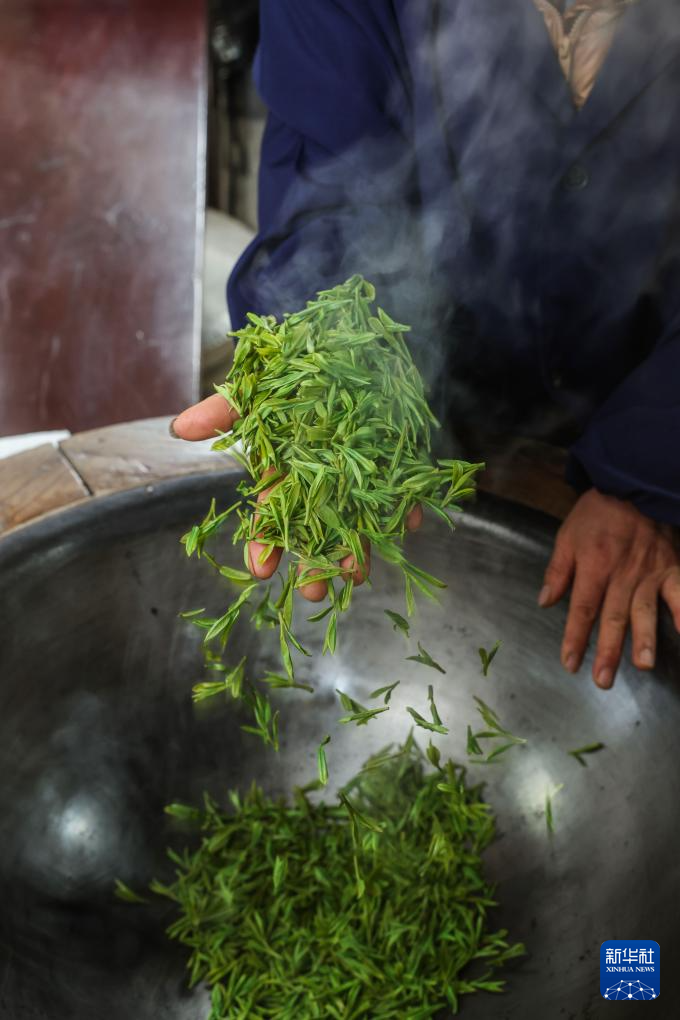 3月19日,梅家坞村的茶农手工炒制首批西湖龙井“明前茶”。