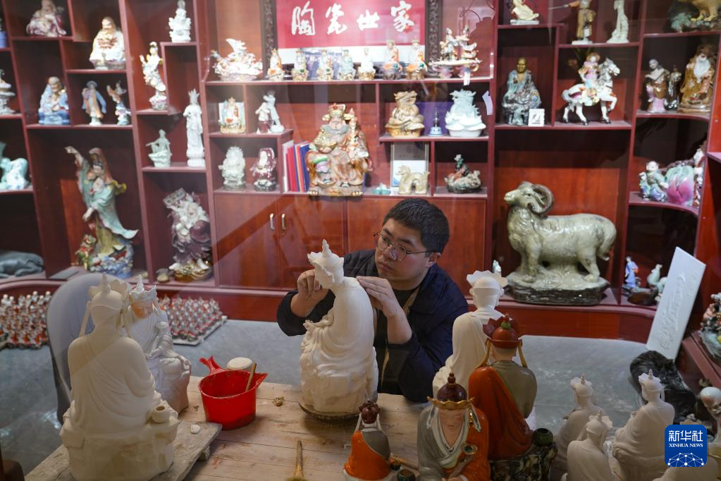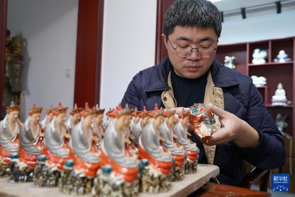 36岁的曾锐是“瓷雕曾”第四代传人,2011年他回家跟随父亲研习制瓷,逐步掌握各类瓷雕技法。2023年“无语佛”爆火后,他成立工作室复刻原作,并结合现代设计开发文创等周边产品。在曾锐看来,传统是根,留住经典题材与技法的同时,用当代语言包装创新,才能让老艺术焕发新生。