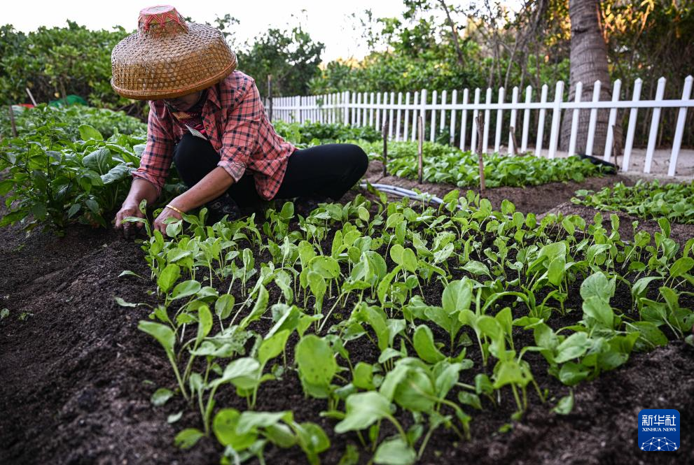 3月19日,岛民在海南三沙赵述岛种蔬菜。