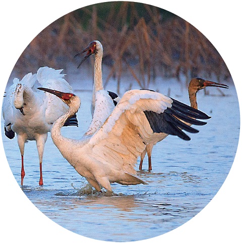 从每年的11月到次年1月,经监测,2000多羽白鹤迁移到红井村等五星白鹤保护小区过冬。2025—2026年,鄱阳湖区越冬白鹤数量在5800羽左右,占全球80%以上。鄱阳湖是全国首批国际重要湿地,也是亚洲最大的候鸟栖息地,被誉为“珍禽世界”“候鸟天堂”“白鹤王国”。