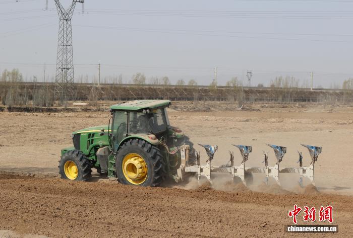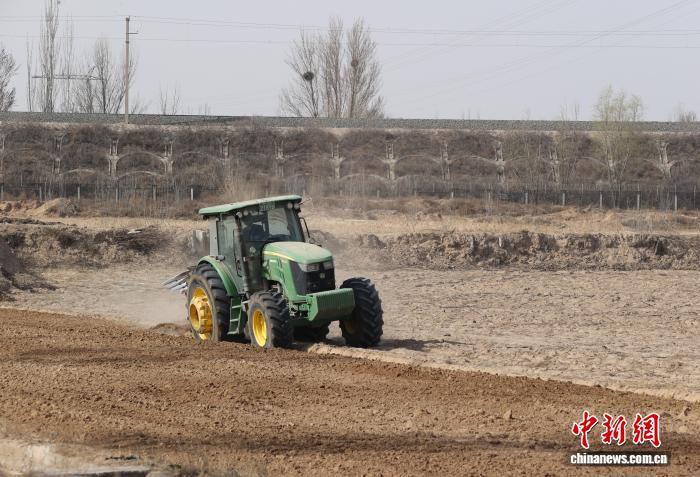 3月23日,宁夏银川市金凤区良田镇,村民正驾驶旋耕机在田间作业。中新社记者 于晶 摄