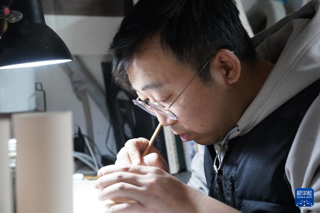曹浪、胡韵月夫妇在工作室创作(3月11日摄)。
