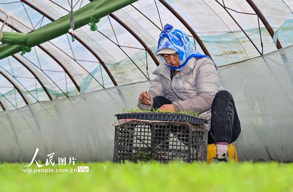 该乡依托育苗大棚,推行“公司+农户”订单化生产模式,为春耕市场稳定供应优质种苗。陶维明摄(人民图片网)