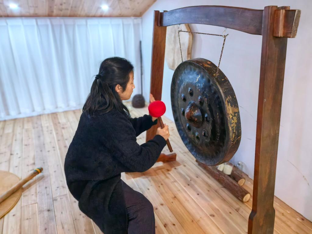 西亚村的业态引入没有走“过度商业化包装”的老路,而是追寻业态和古村的完美契合。音疗室内余音袅袅,音疗师范允乐正在用铜锣、颂钵等各种形式,通过音声舒缓体验者的压力。“在古建筑之中,闭目感受声波,进行一场深度的心灵按摩。”范允乐说。