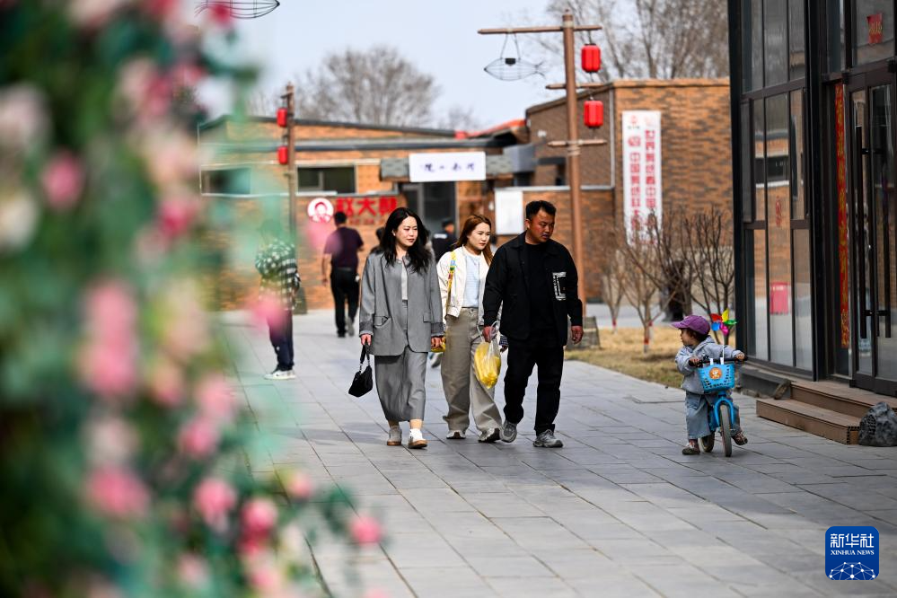 3月30日,游客在位于画匠营子村的“天下黄河第一村”景区游览。